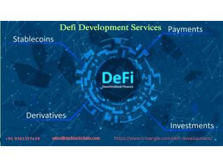 Defi Development Services provides specialized solutions for the development of decentralized finance projects that are strong and pioneering. By prioritizing advanced technology and adhering to industry standards, Defi Development Services guarantees that your project is crafted with the utmost attention to security and performance. Their seasoned team is committed to providing exceptional services tailored to the individual requirements of each client, supporting them in successfully navigating the intricate landscape of decentralized finance.