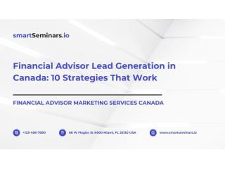 Financial Advisor Marketing Services Canada: Discover 10 proven lead generation strategies for advisors to attract high-quality clients and grow their practice. Learn how targeted marketing, educational content, and digital systems create consistent results. Build a reliable pipeline with expert guidance. Contact Smart Seminars to start generating qualified leads today.