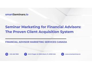 Financial Advisor Marketing Services Canada: Discover how seminar marketing helps advisors attract high-quality clients through education-based strategies. Learn how workshops and webinars build trust, improve engagement, and generate qualified leads. Turn prospects into long-term clients with proven systems. Contact Smart Seminars today to grow your client base and increase conversions.