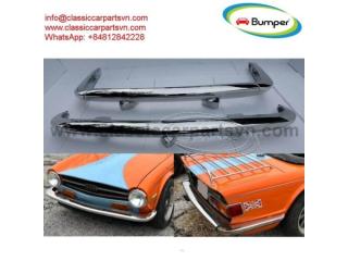 Triumph TR6 (1974-1976) bumpers without license plate shield by stainless steel new A set of 1 front bumper in 1 piece , 1 rear bumper in 3 parts, bolts and screw. The product has shape and size like the original samples. So, They perfect ...